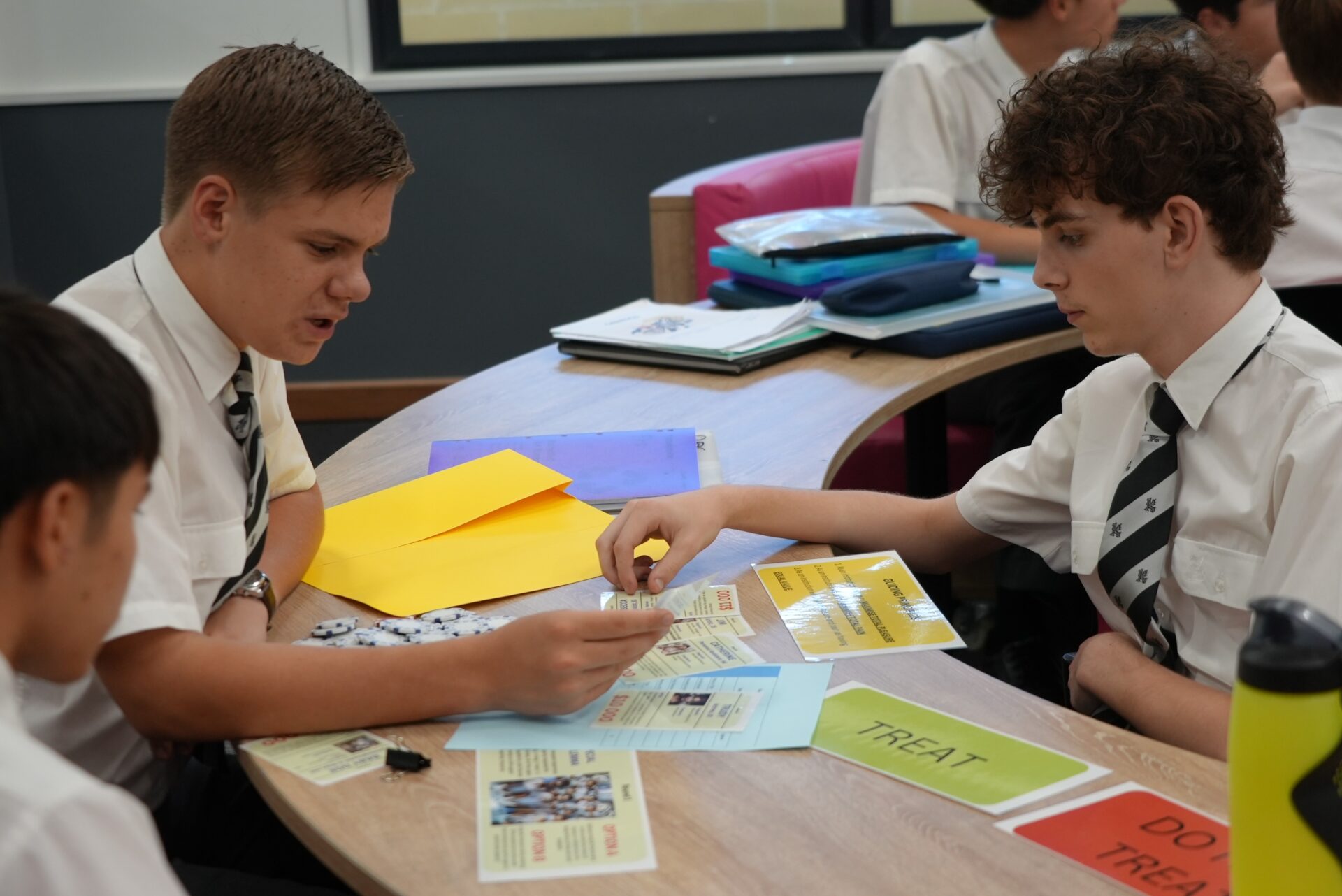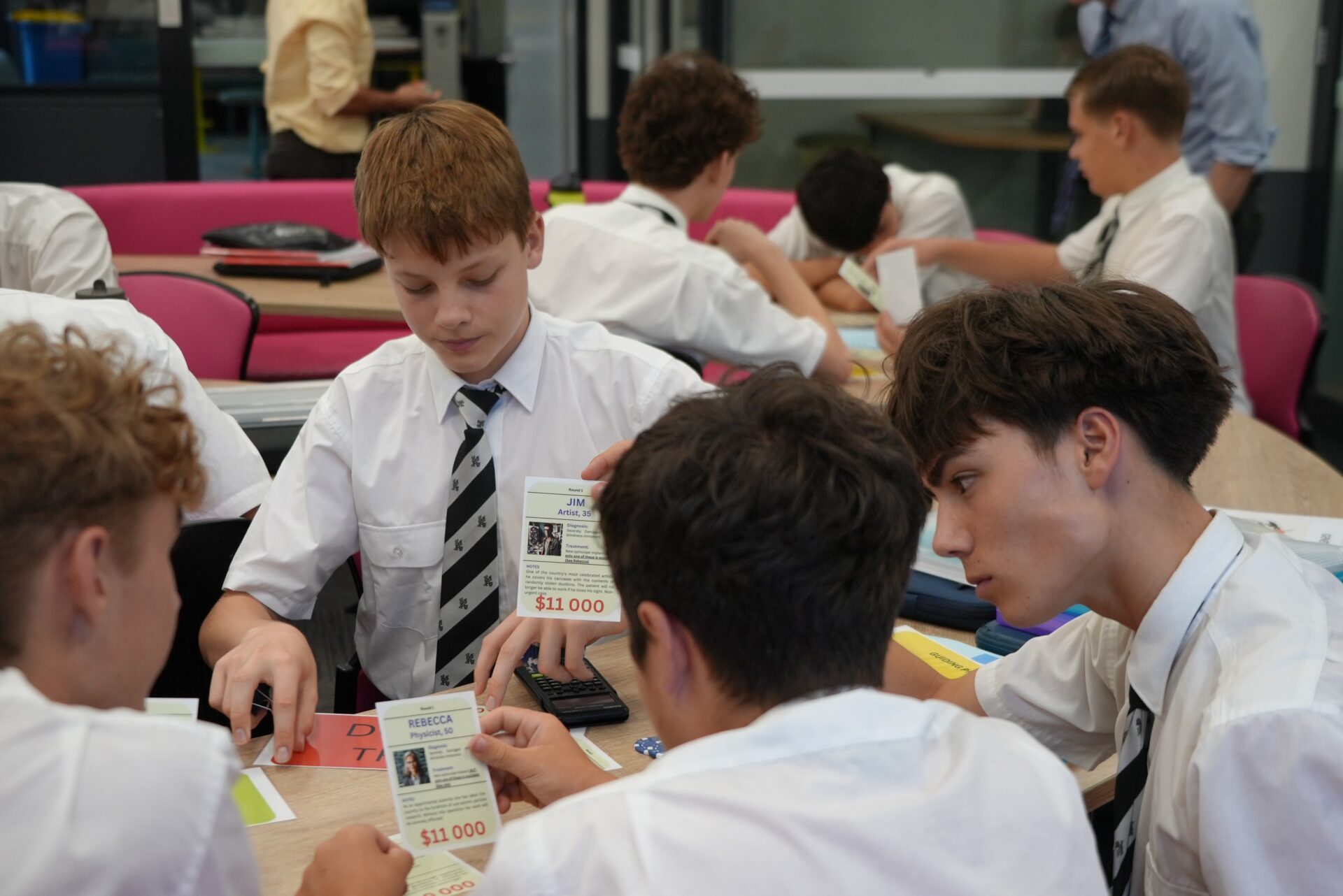 As Year 10 Philosophy and Religious Studies students began to investigate and understand ethical theories, Mr Andrew Costantino, Head of Philosophy and Religious Studies, and teachers, Mr Ivan Kenneally and Mr Jason Nowland, used a tabletop card game called ‘Treat or Not Treat’ in Bentham’s Hospital, to illustrate the principles of utilitarianism, and its inherent moral dilemmas.